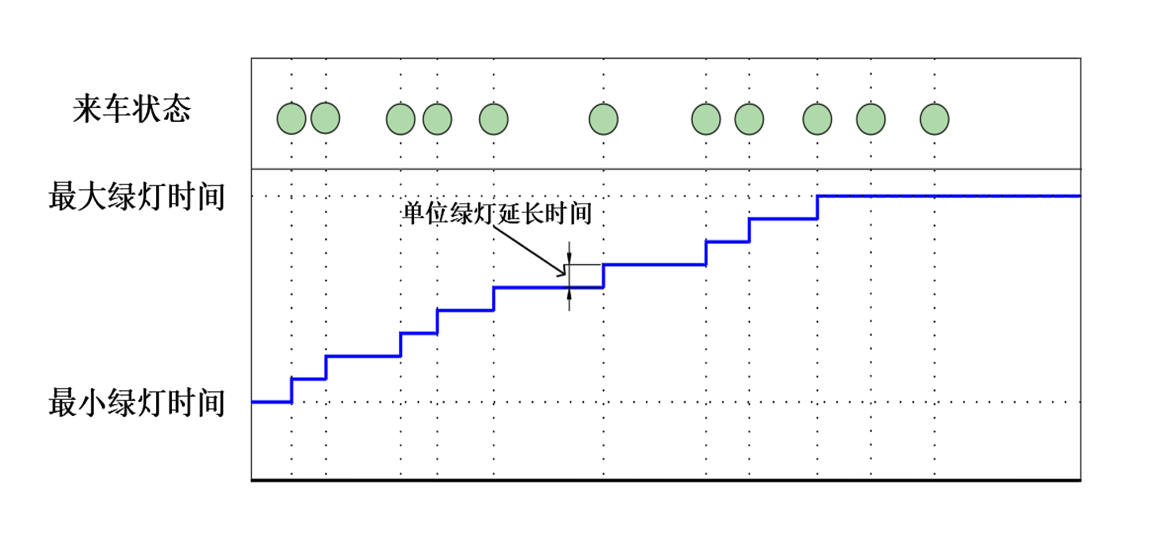 交叉口的车流到达往往是随机波动的,因此,信号控制的效率取决于信号配时对每分钟都在波动的交通流的响应程度,由于感应控制能够高度适应交通需求及交通模式的变化,因此能够明显降低延误,而完善的检测信息也使控制机能够在每周期内有效地分配时间。感应控制的特点在于所有的相位都是感应的,如果没有车辆或行人被检测到,则该相位可以被跳过,由信号控制机将时间分配给后续相位。