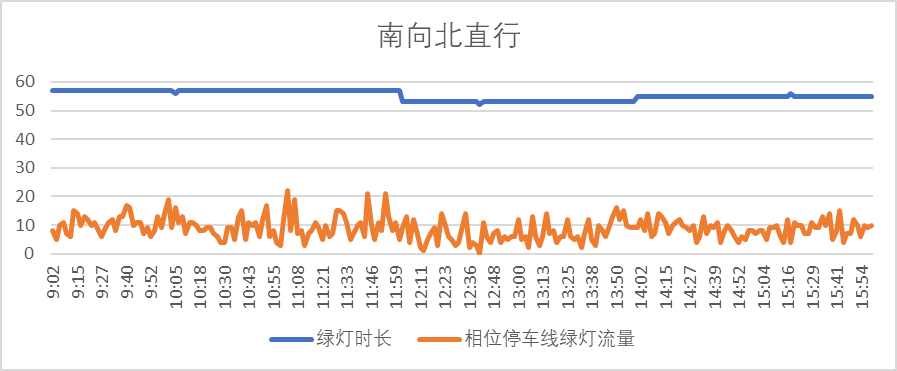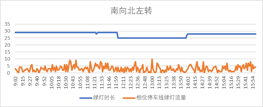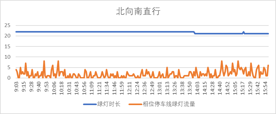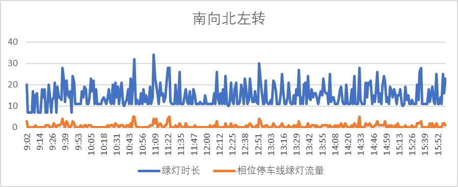 感应控制启动后,绿灯时长能随交通流量的变化而动态改变,有效减少了由于车流量波动的不确定性,而导致的绿灯空放和二次排队现象,交叉口通行效率得到明显提升。