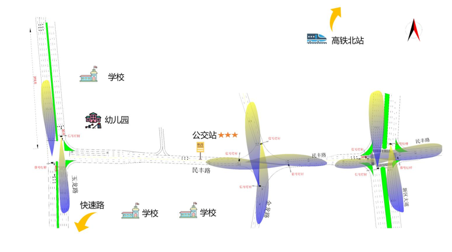 龙华区民丰路在早高峰期间,大量的西行车流经过民丰路--新区大道/金龙路/玉龙路三个连续交叉口去往南坪快速,受龙悦居公交站大巴停靠、南坪快速路排队倒灌等影响,常规信号配时方案无法满足早高峰路段通行需求,导致区域性交通拥堵,严重时迫使交警安排近10余名警力现场疏导,“滴水式放行”耗费大量警力资源。